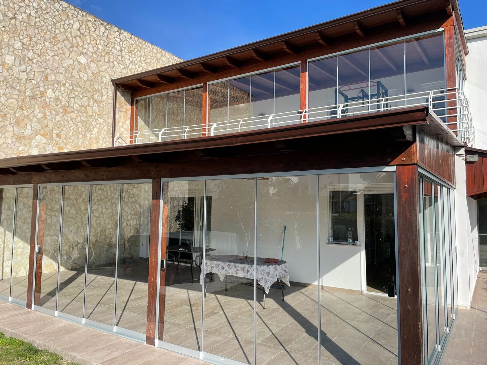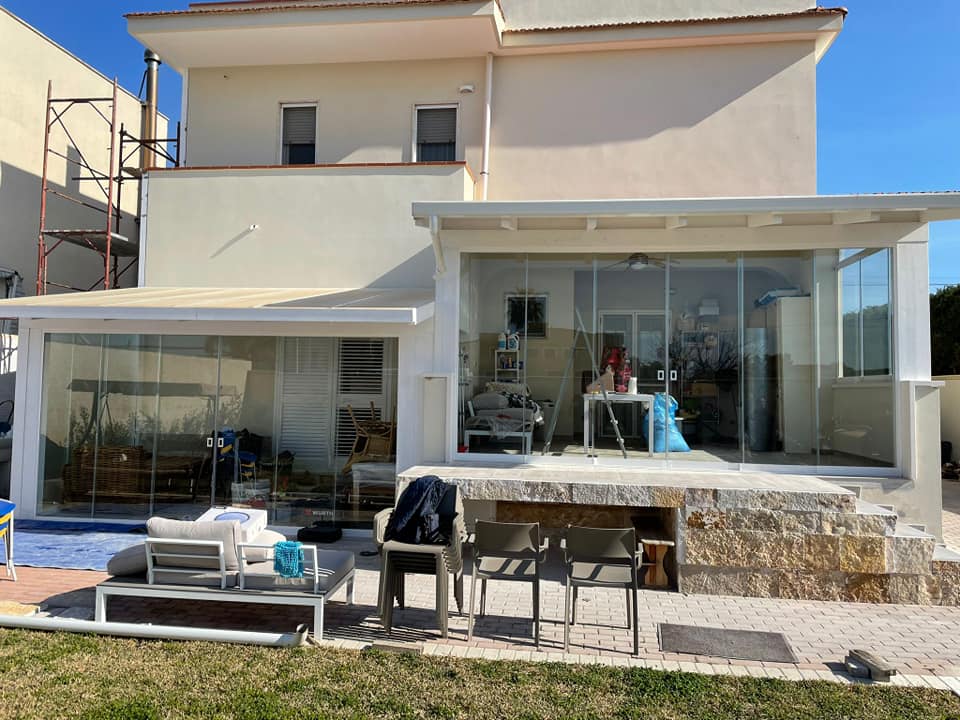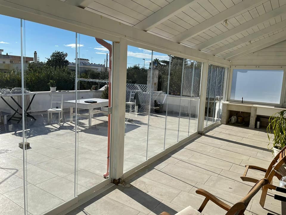 Le vetrate panoramiche sono la richiesta più gettonata, in quanto non hanno bisogno di permessi comunali e condominiali. Sono la soluzione ideale per la chiusura di balconi, porticati o coperture in legno e, inoltre, con le vetrate panoramiche potrai usare i tuoi spazi all'aperto in tutte le stagioni, mantenendo la visibilità e la luminosità originale che hai sempre desiderato.